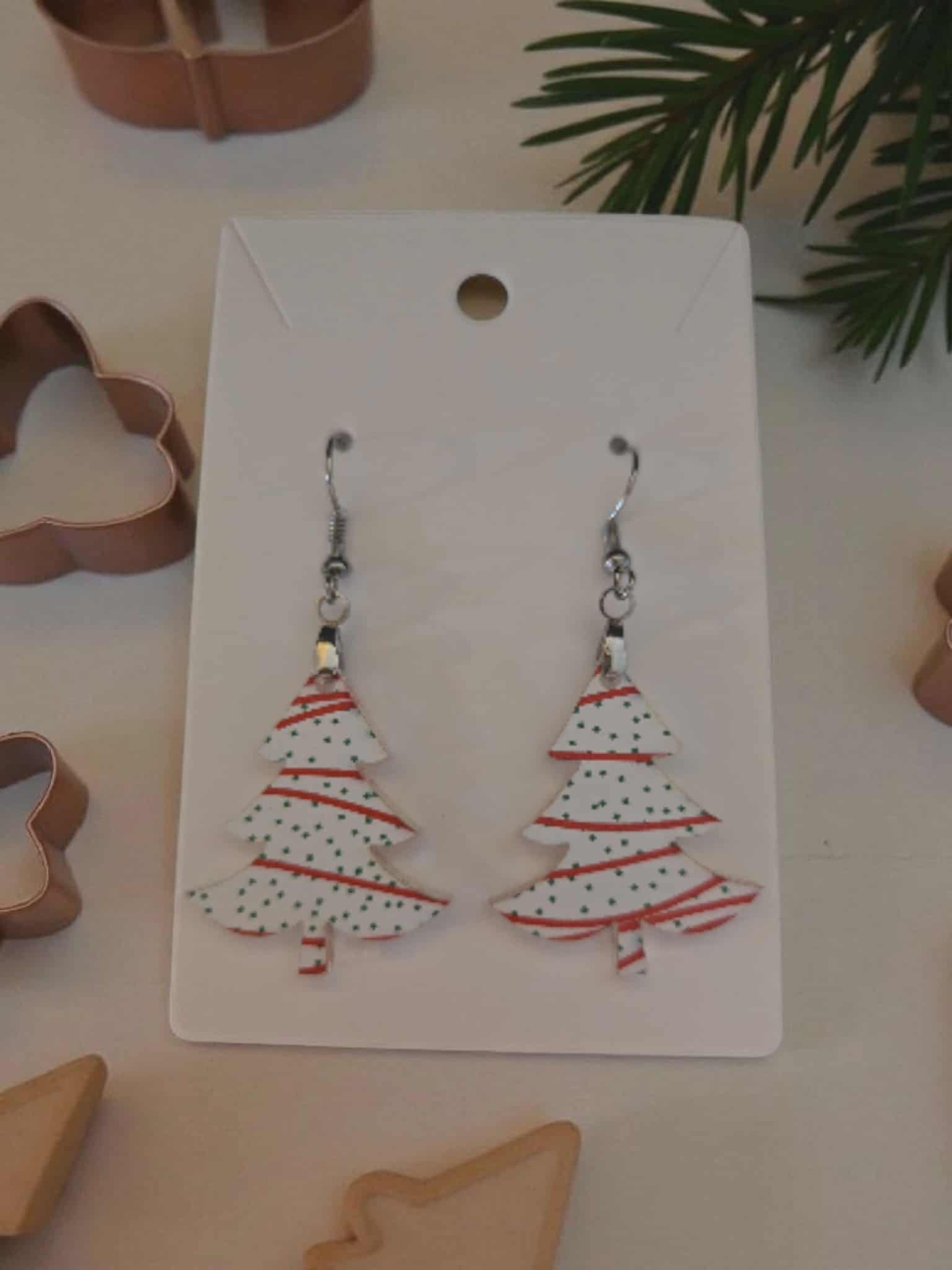 Deck your ears with festive flair! These whimsical dangle earrings capture the charm of a Christmas tree cake in miniature form. Featuring layered green details and a playful design, they're the perfect accessory for holiday parties, ugly sweater events, or anyone who loves a touch of seasonal humor. Lightweight and fun, these earrings bring instant holiday spirit to any outfit. Celebrate the season with a smile!