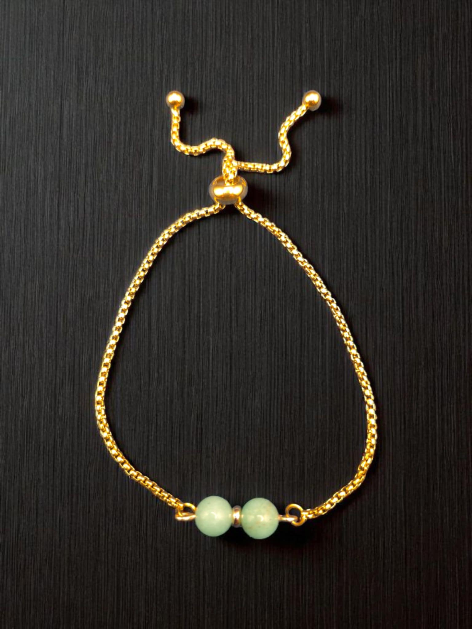 Green Aventurine Beaded 18K Gold PVD Stainless Steel Cinch Bolo Chain Bracelet