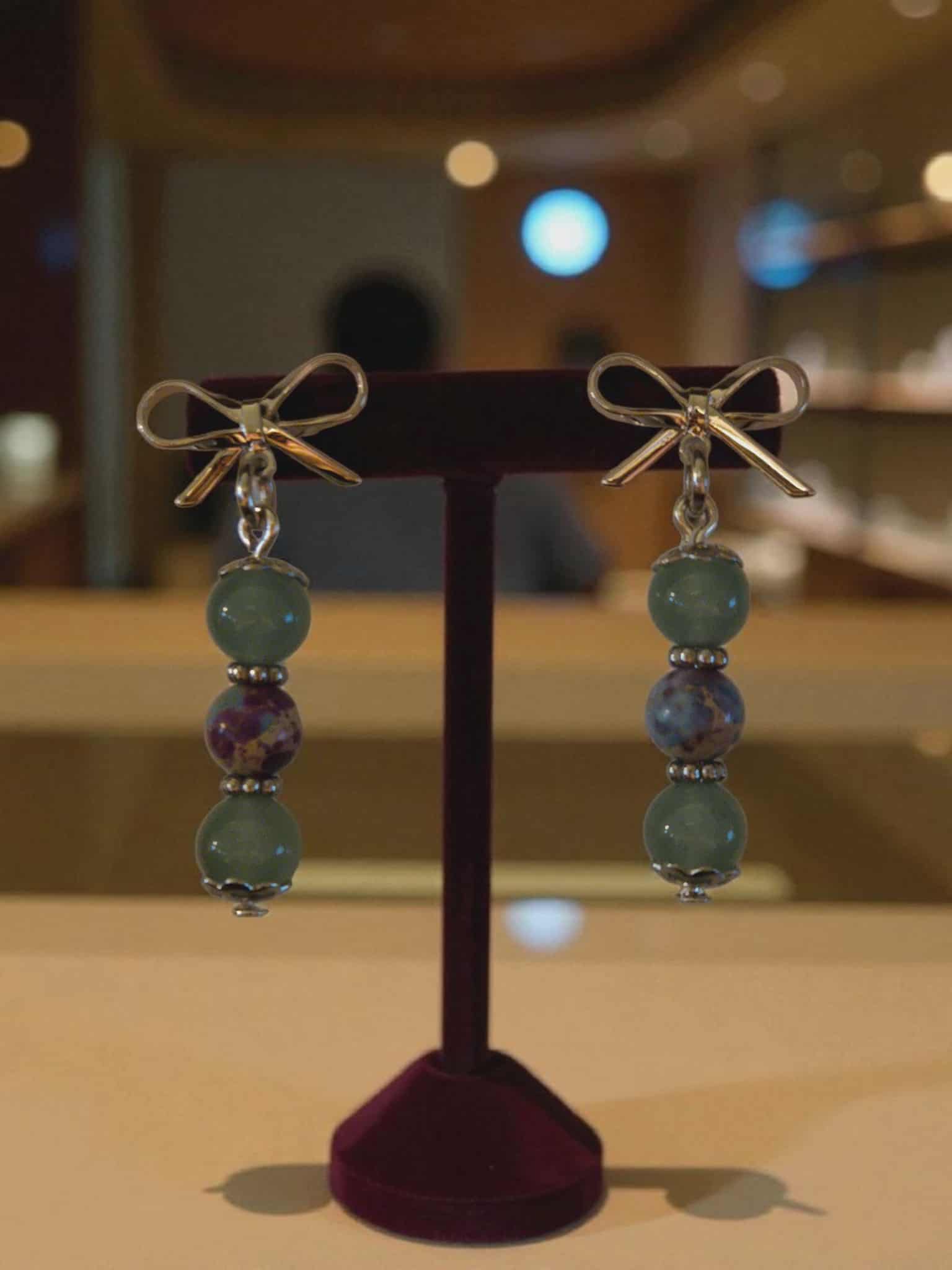 Natural Stone Beaded Bow Dangle Earrings